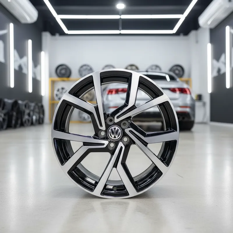 Marca/Estilo: El diseño es similar a los rines de la marca Volkswagen (VW), como se ve por el logo central.