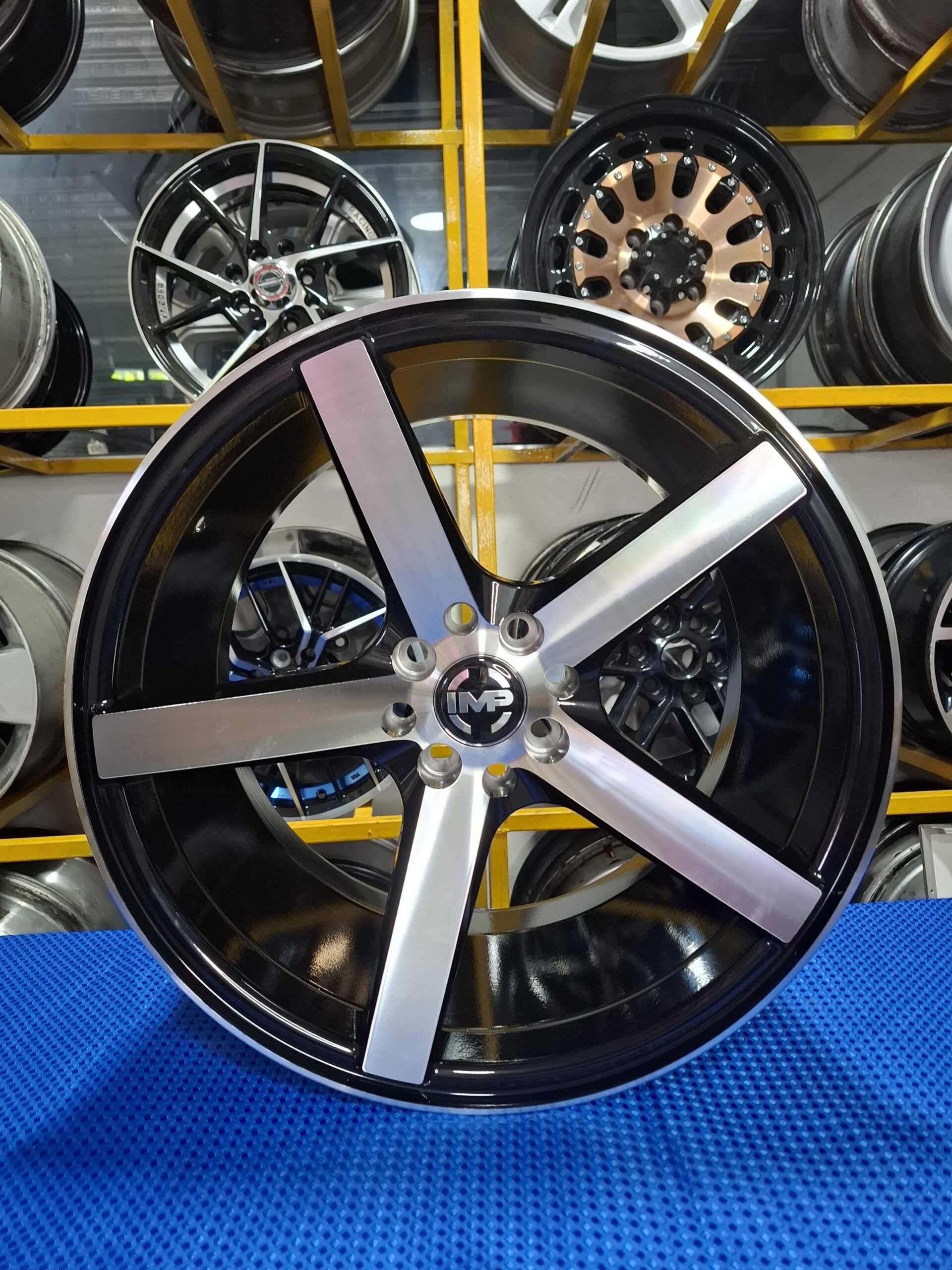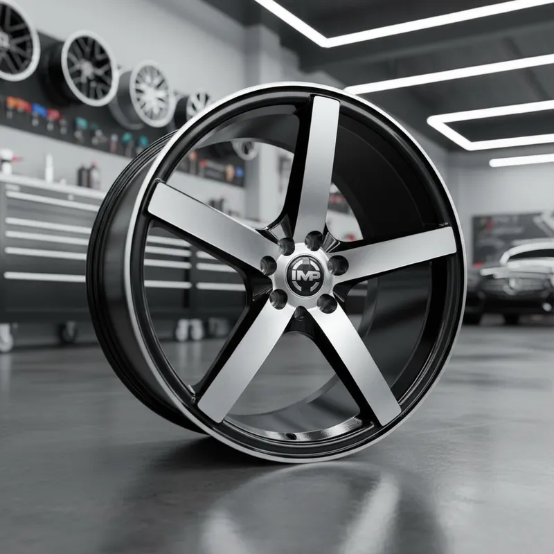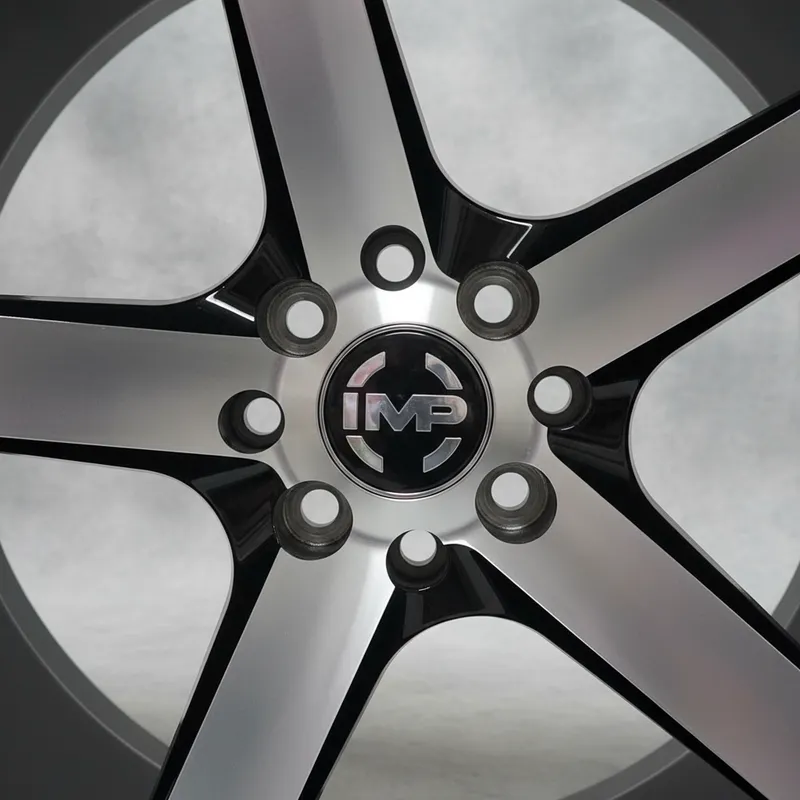 - Descripción Visual: Rin de aleación con un diseño de cinco radios anchos y planos. Presenta un acabado bitono (MB), con la cara de los radios y el borde interior del rin en un color metálico brillante (maquinado), contrastando con el fondo o los lados del rin en negro. La barrenación indica que es un rin de doble barrenación o universal para vehículos que comparten esos patrones.